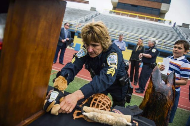 Alrededor de cien personas se reunieron el pasado sábado para celebrar un funeral en memoria de Vegas, un perro policía recientemente fallecido. El funeral se llevó a cabo en el estadio de rubgy Norwin High School.