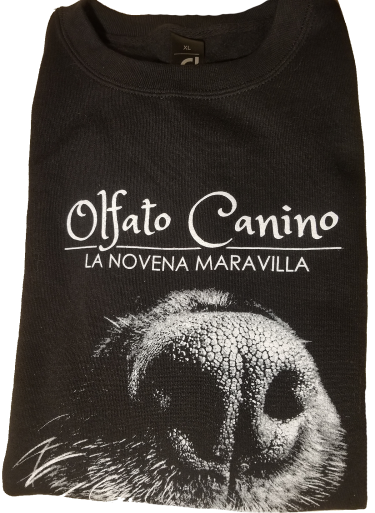 Una sudadera de “Olfato Canino, la novena maravilla”, negra, talla XL