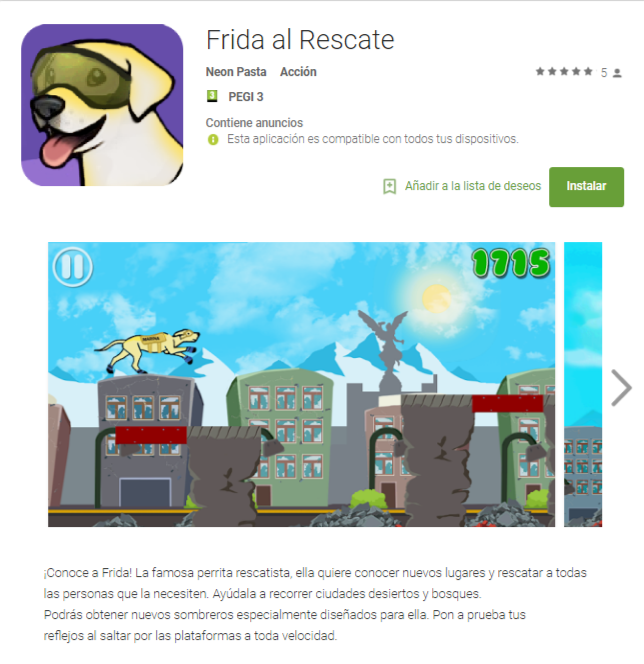 ‘Frida al rescate’, una app en la que el jugador podrá ayudar a la famosa perra rescatista a superar obstáculos y rescatar personas