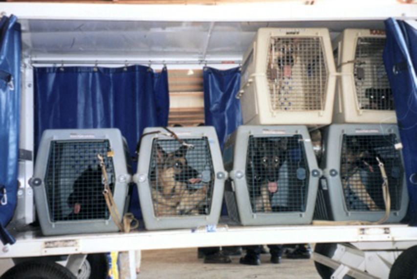 Esto se agrava exponencialmente en el caso de las intervenciones a otros países, por ejemplo en el caso de una catástrofe. Ahí los perros deben viajar, en sus transportines, en la bodega de un avión. Y pasarán juntos muchas horas, incluso días. ¿Qué estado emocional vamos a crear en esos perros?